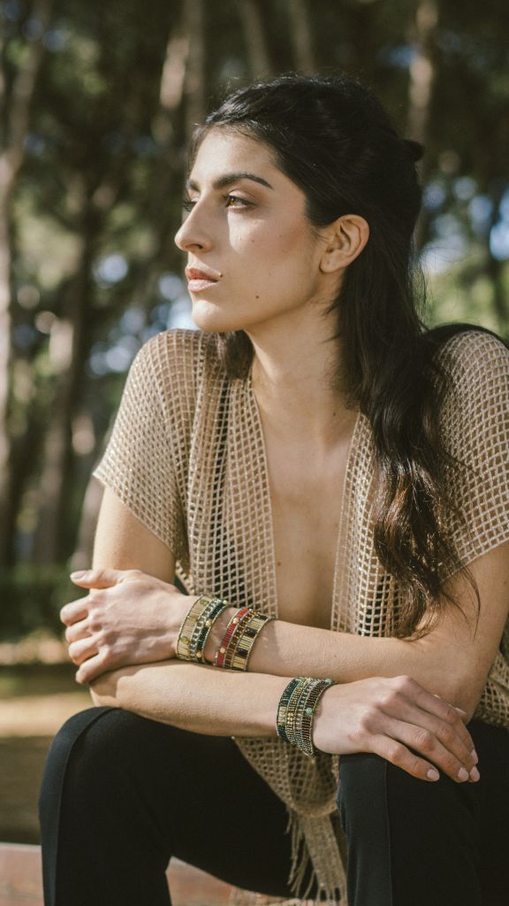 La struttura del gioiello è un’infilatura manuale che richiede molta pazienza e abilità. Un sottile filo d’acciaio crea la morbidezza e, allo stesso tempo, la forza dei nostri gioielli. La chiusura dei nostri bracciali è in argento 925, un materiale nobile che esalta ulteriormente la bellezza di questi gioielli.