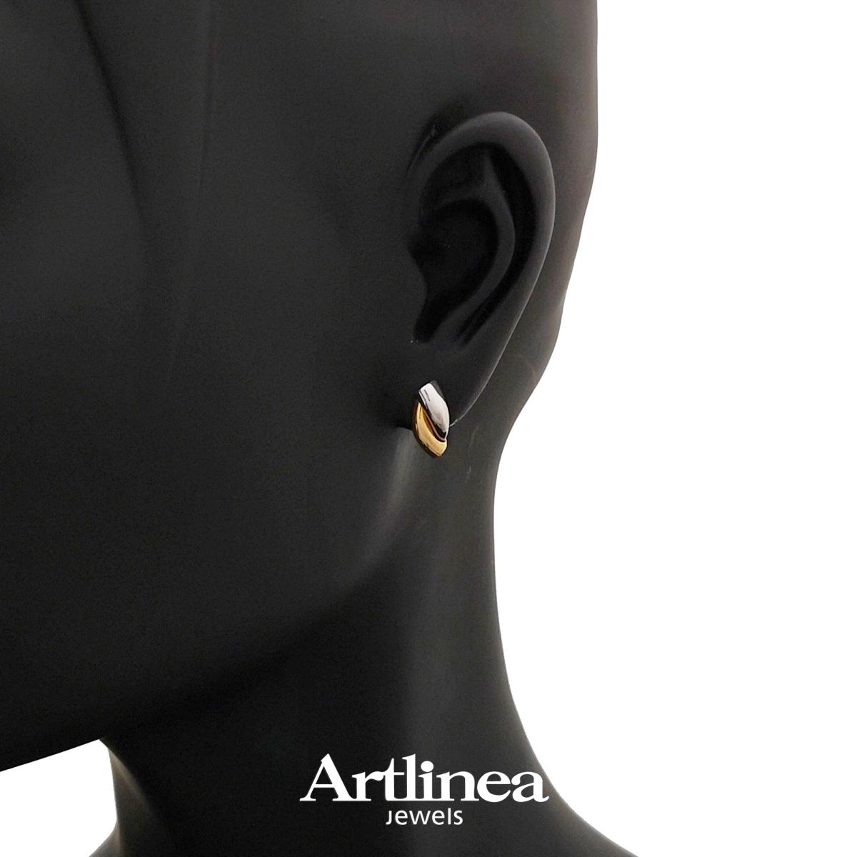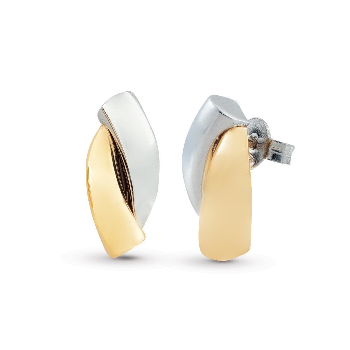 Orecchini in oro 18kt alti 1,4 cm con finitura lucida bicolore e chiusura con perno e farfallina