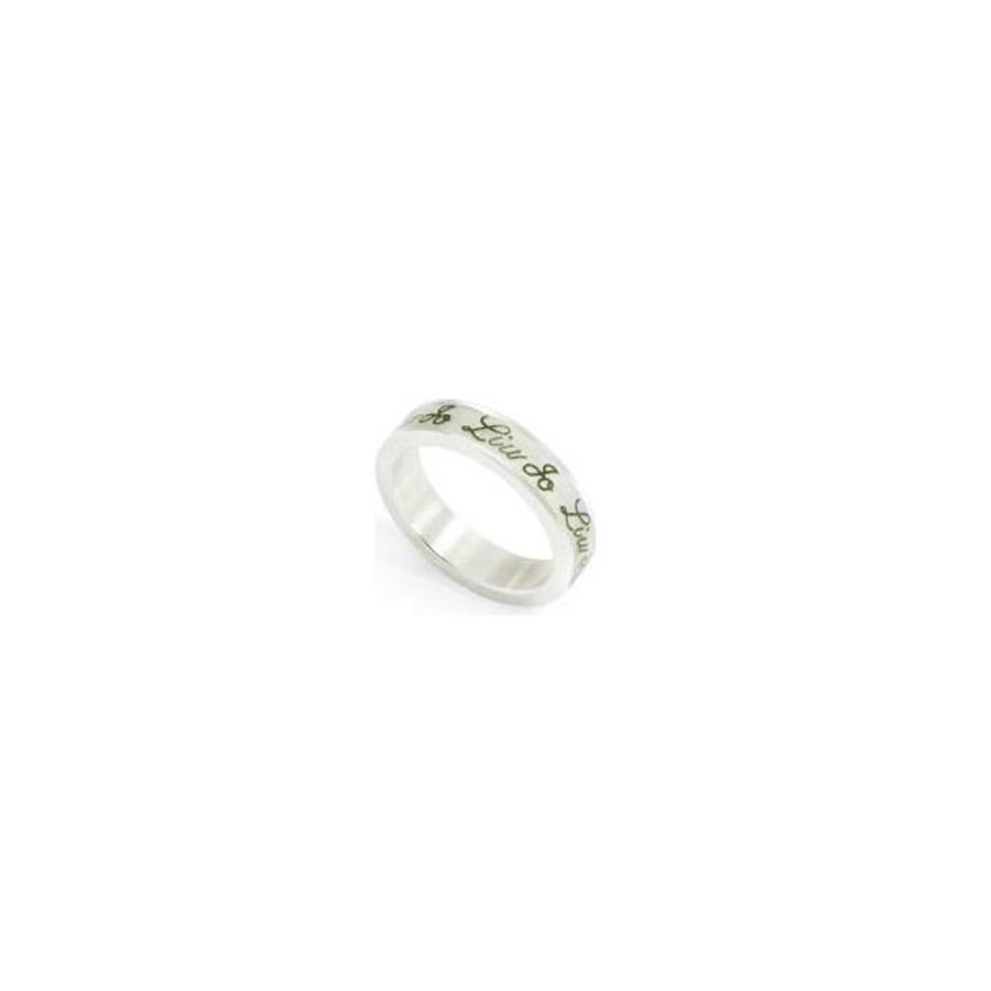 Anello fedina modello a fascia, centrale smaltato di colore bianco con logo Liu Jo inciso a laser