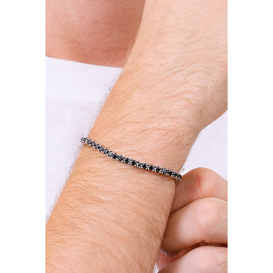 Bracciale da uomo di Comete della collezione tennis, in argento 925% con zirconi neri