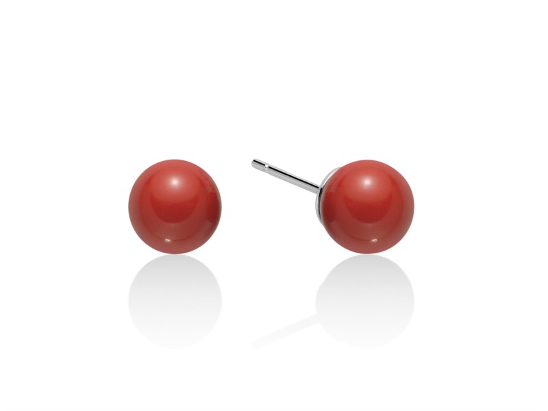 Orecchini in argento 925 in agglomerato di corallo rosso del diametro di 7 mm.