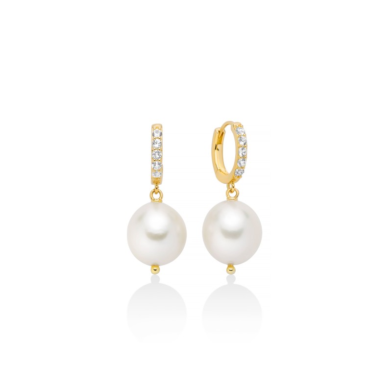 Orecchini in argento 925 composti da perle barocche di diametro da 12-14 mm impreziositi da dieci topazi bianchi taglio tondo.