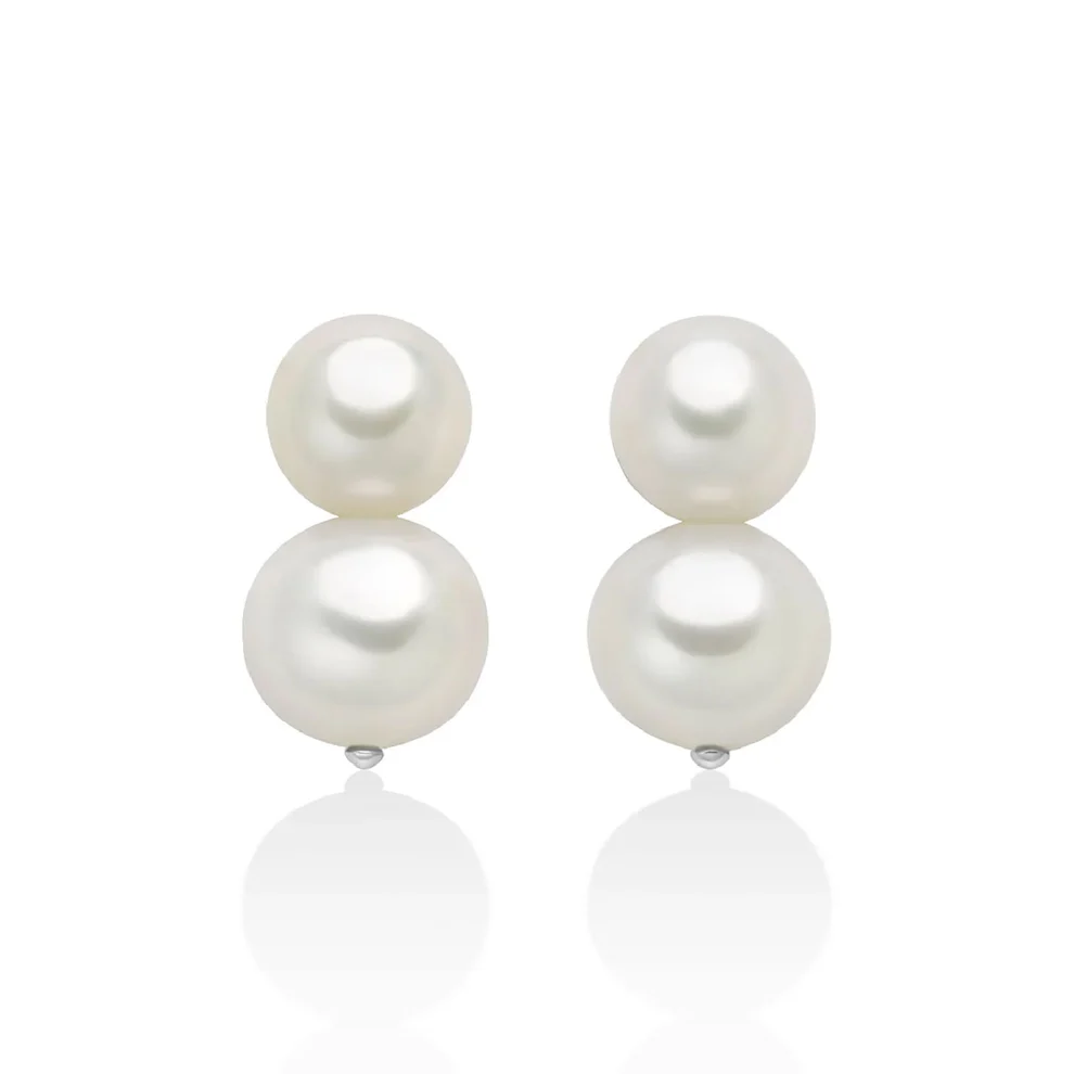 Orecchini pendenti in Argento, caratterizzati da due perle hanno diametro 6/6.5 mm; le altre due hanno diametro 7.5/8 mm. Chiusura a perno.