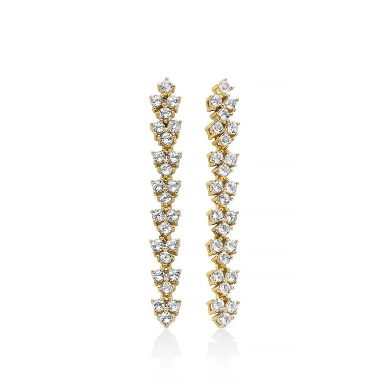 Orecchini pendenti in argento 925 dorato e 50 topazi bianchi naturali taglio rotondo